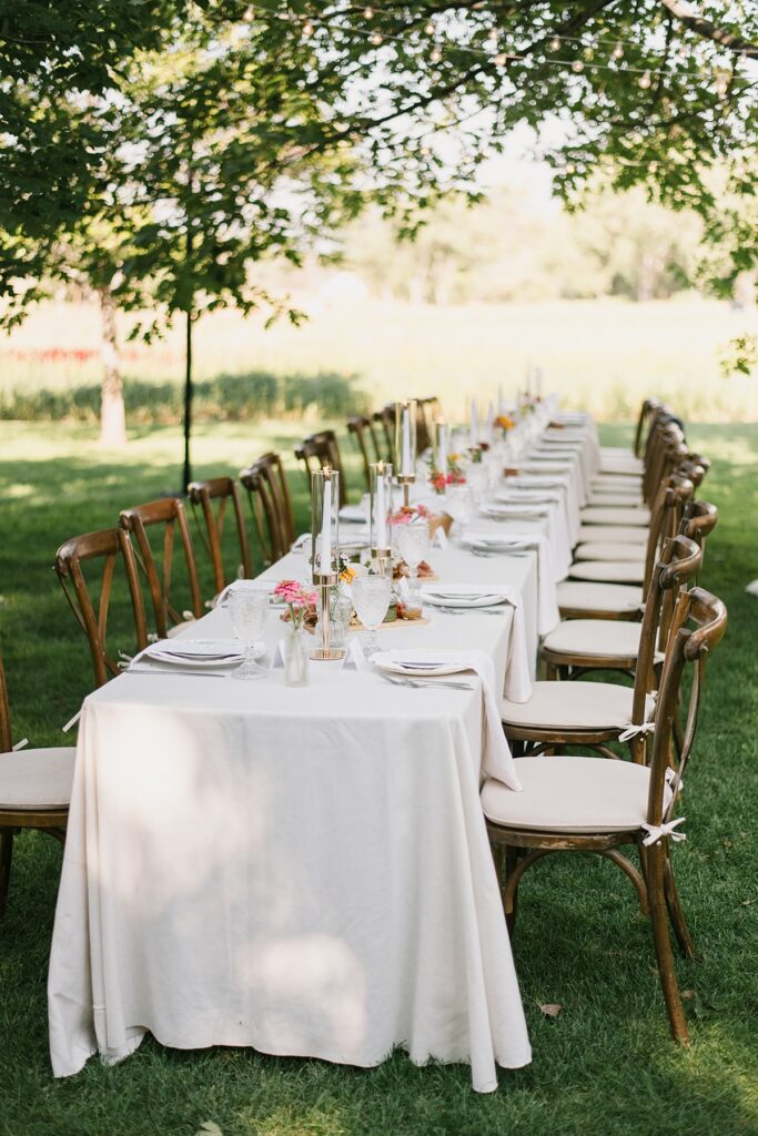 Boulder Flower Farms is also a “build it yourself” type of venue. It can be very blank slate. The property has space for a lot of outdoor usage, and tents are highly recommend for reception spaces. You can bring in any vendors you’d like! As well as what chairs, tables, and lighting you’d like to create your ambiance. That being said, the venue is all outdoors, and is really a seasonal venue that is best in the spring, but available May-October.